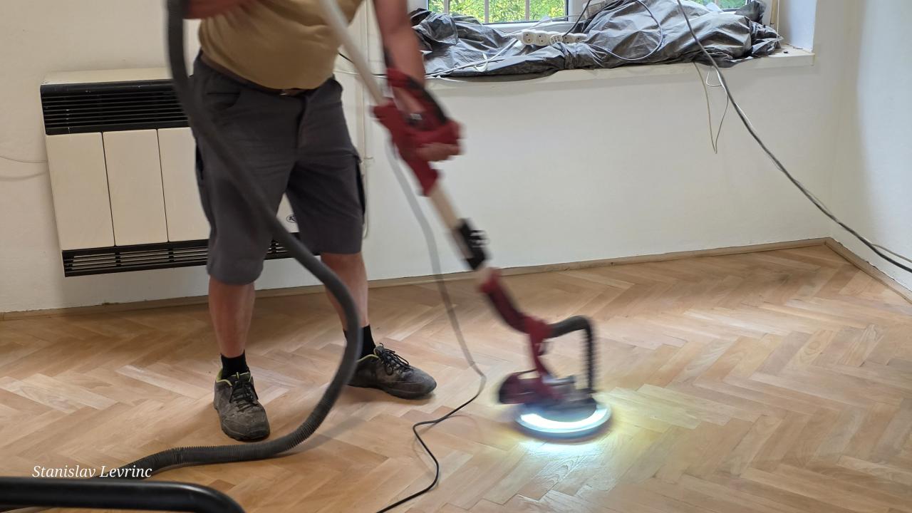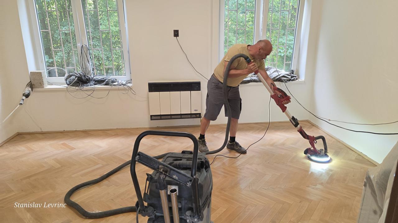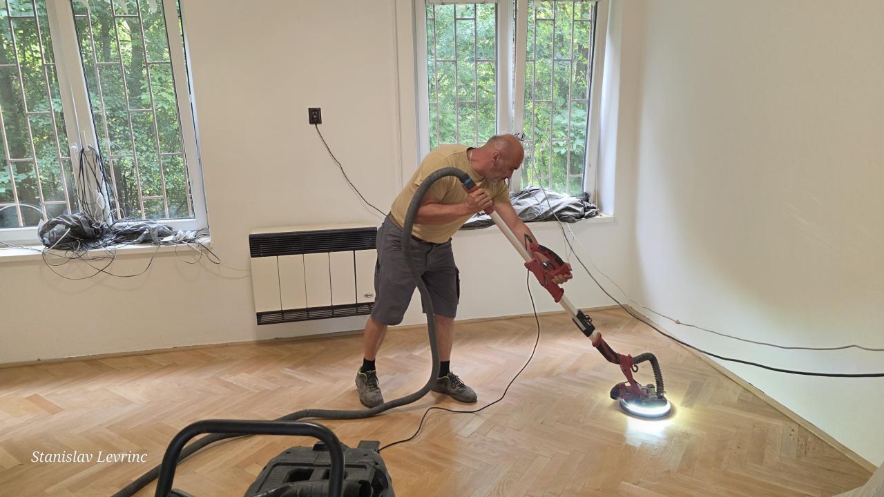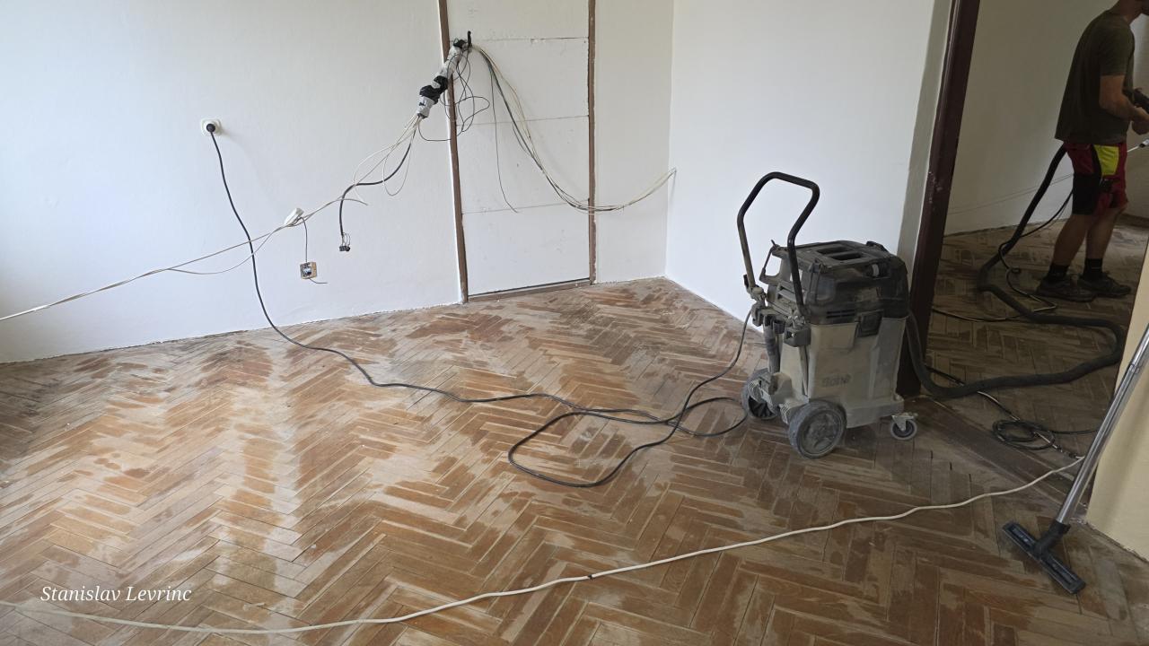 Od 5. septembra 2025 nadväzujú práce na podlahách – prebieha brúsenie, oprava a následné lakovanie parkiet v kanceláriách. Cieľom je nielen odstránenie následkov vytopenia, ale aj skvalitnenie pracovného prostredia na obecnom úrade.